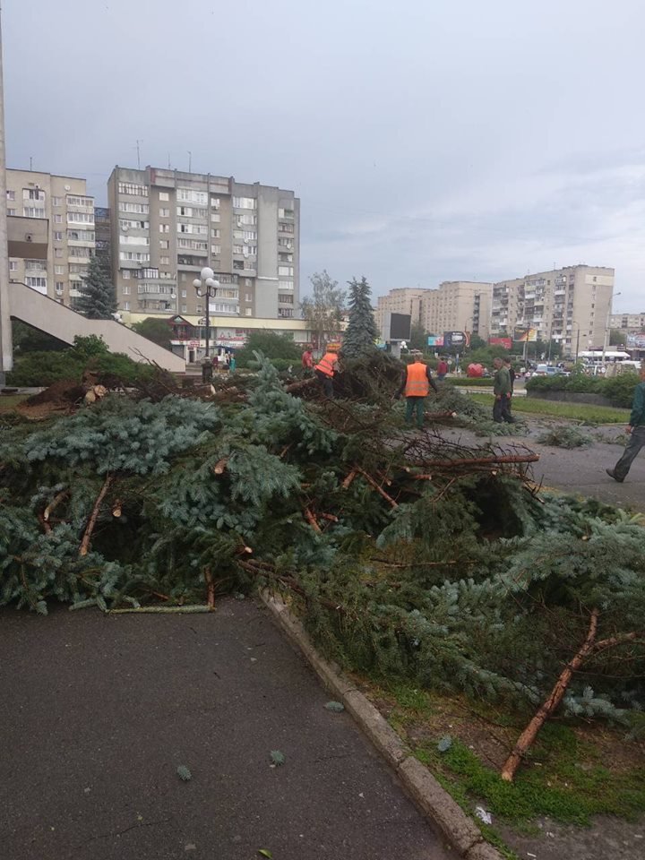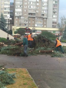 Зокрема роботи тривали в районі РАЦСу та проспекту Соборності. Тут комунальники різали та вивозили повалені ялини та берези.