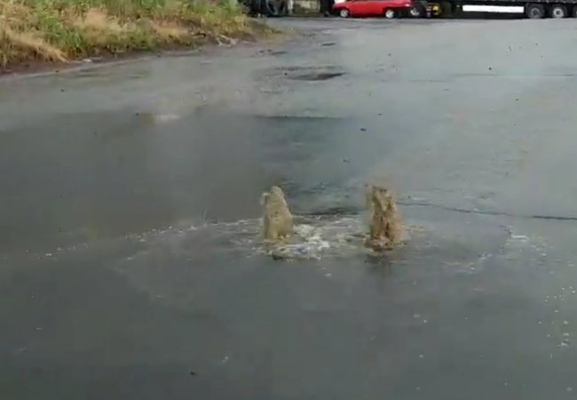 Ролик з’явився на сторінці користувача Вячеслава Супрунюка. На ньому видно, як із асфальту б’ють невеликі струмені води.