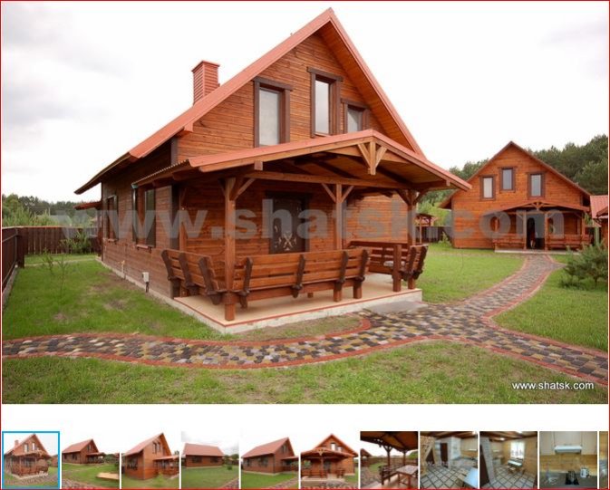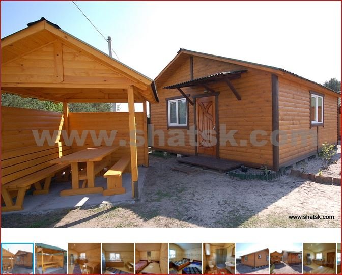 Котеджі облаштовані мангалами та критими терасами, дерев'яними столами та лавками. Територія огороджена. Поруч знаходиться сосновий ліс, де можна збирати гриби та ягоди.