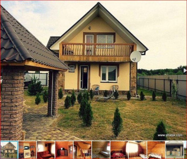 На першому поверсі є велика крита тераса зі столиками і лавками, плазмовий телевізор з супутниковим телебаченням, кухня, двоспальні та дворівневі ліжка, супутникове телебачення, санвузол. Такі ж умови й на другому поверсі котеджу. Щоправда, там ще є балкон.