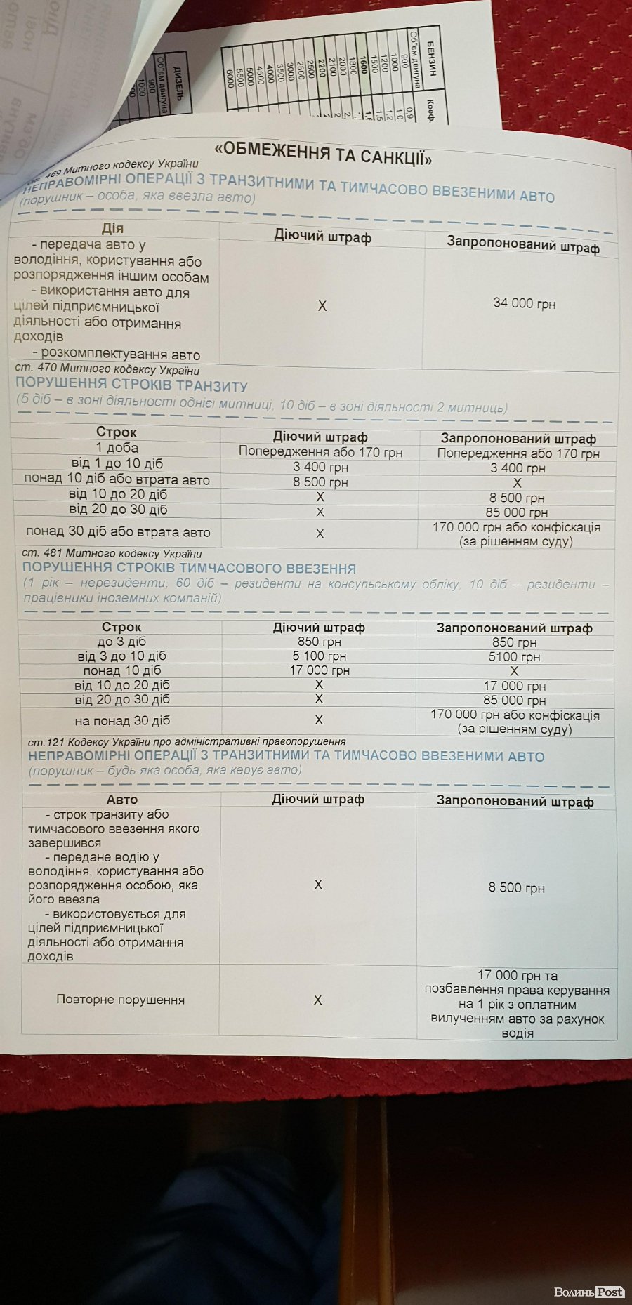 Окрім того, зі слів Ігоря Лапіна, потрібно платити за порушення строків транзиту та тимчасового ввезення, передачу машин у володіння іншим особам, використання з метою ведення підприємницької діяльності тощо. Зокрема, один із законопроектів передбачає штраф за порушення терміну транзиту від 10 до 20 діб у сумі 17 000 гривень, за «прострочку» тимчасового ввезення від 20 до 30 діб – 85 000 гривень.