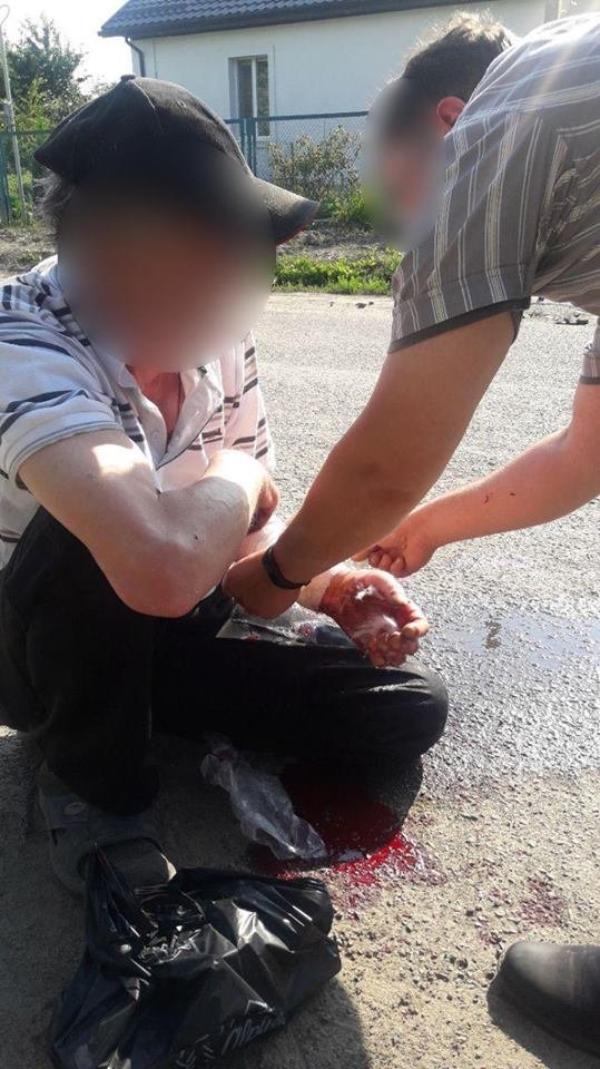 За її словами, під’їжджаючи до свого ому, побачили чоловіка на землі, біля якого була калюжа крові. Якийсь водій зупинився і вже надавав йому допомогу, перебинтовував руку, давав пити воду.