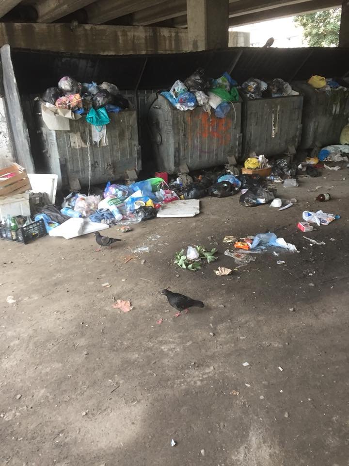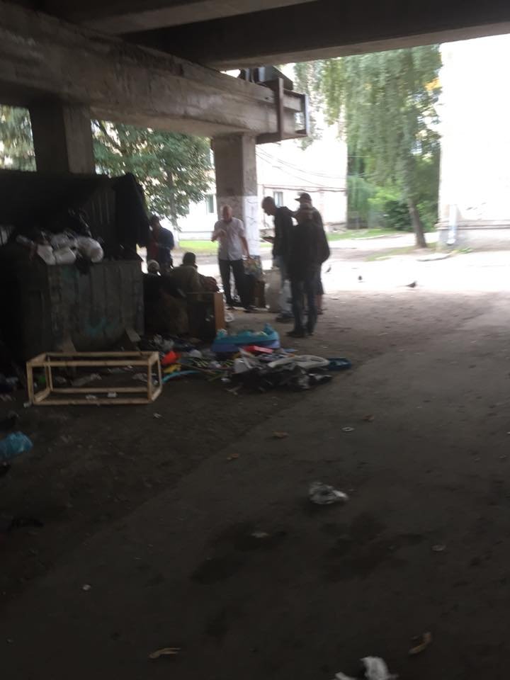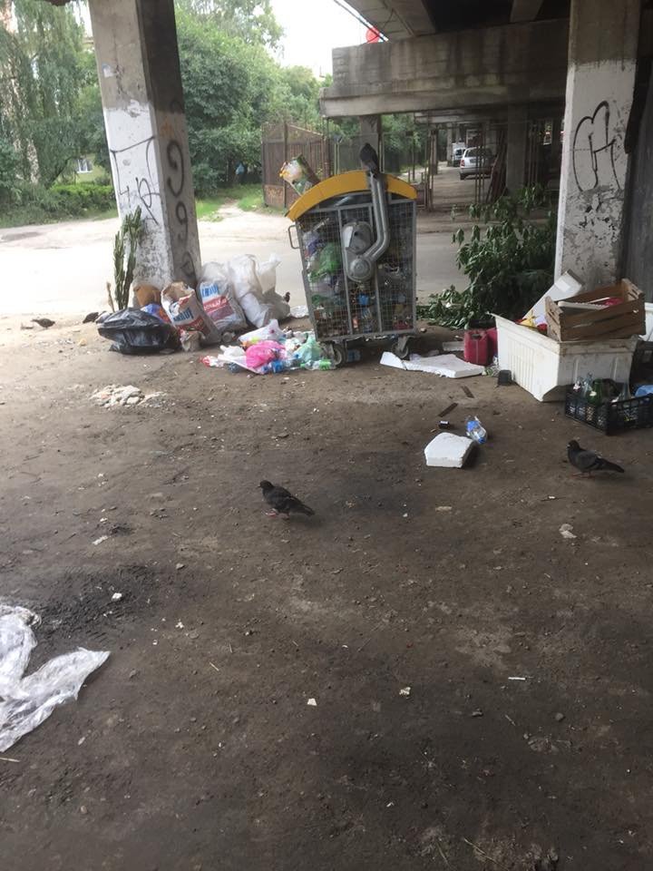 "Пр. Перемоги, під мостом!!! І так кожен ранок!!! За якій вивіз сміття ми сплачуємо? Моє сміття ніхто не вивозить! А бомжи, це просто окраса нашого мікрорайону!!! Потужна праця нашої влади! Раніше такого не було! Дуже сумно!", - йдеться у дописі.