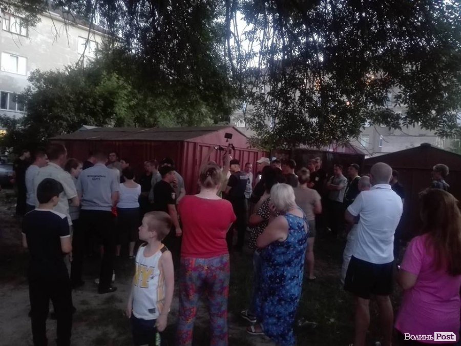 Муніципали завітали у двір на проспекті Грушевського в Луцьку, аби демонтувати гараж. Натомість місцеві жителі виступили проти цього.