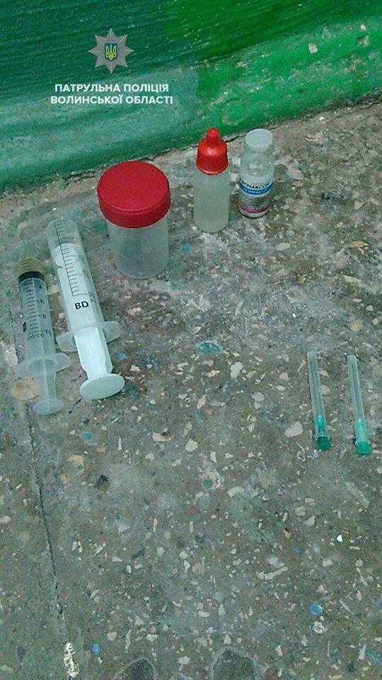 У дописі зазначають, що біля 36-річного чоловіка були розкидані шприци, а також пластикові ємності з невідомими речовинами, схожими на наркотичні.