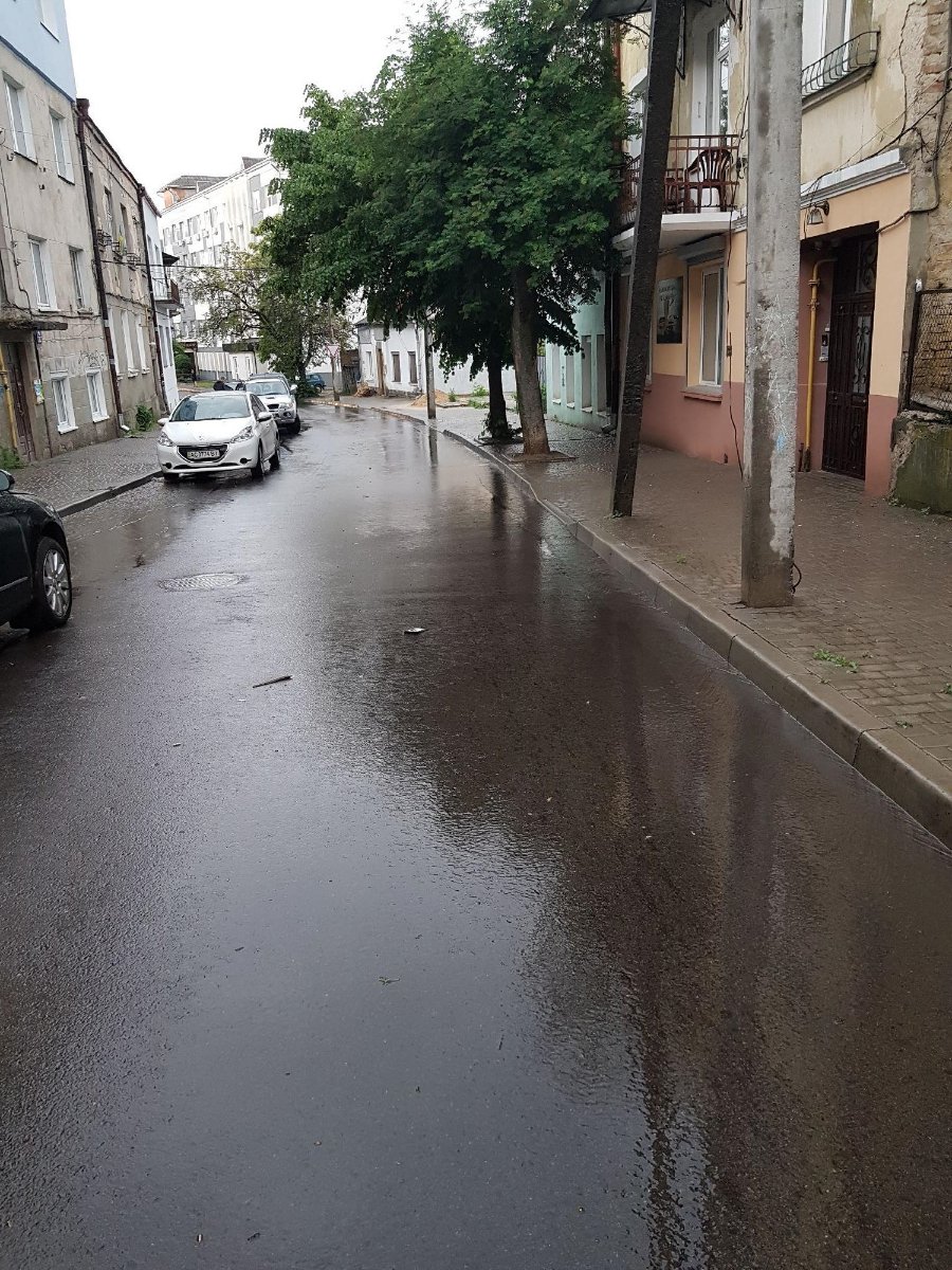Вона зазначає, що через негоду зайти в двір просто неможливо. Ірина Кашуба підкреслює, що на перехресті цих вулиць навіть утворюється «озеро», оскільки вода з верхніх вулиць біжить униз.