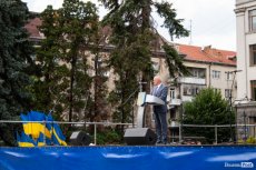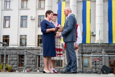 До вітального слова долучився також голова ОДА Олександр Савченко: «Лише 22 року тому Верховна Рада України ухвалила Конституцію, Основний Закон нашої держави. І цим український народ продемонстрував, що відкидає радянський вектор руху і воліє крокувати шляхом розвинених країн. Вперше в українській історії Людина, її життя і здоров’я, честь і гідність, недоторканність і безпека були визнані найвищими цінностями».