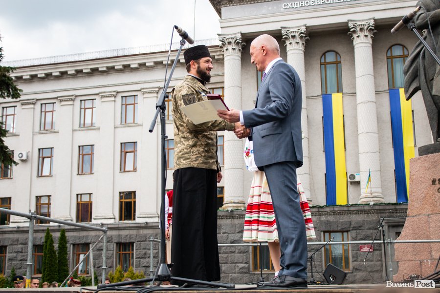Розпочався захід із богослужіння, яке очолив митрополит Луцький і Волинський УПЦ КП Михаїл, та урочистого виконання Державного Гімну України.