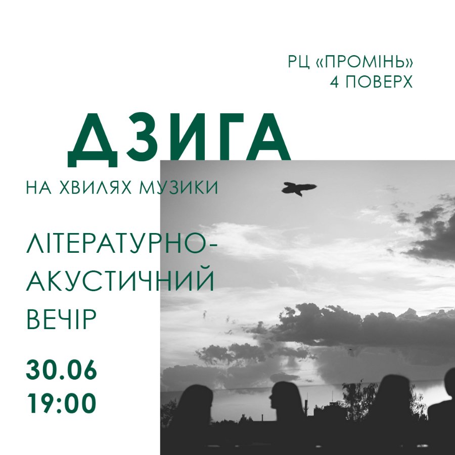 У Grand Central food terminal, що на 4-му поверсі РЦ «Промінь» 30 червня о 19:00 відбудеться літературно-акустичний вечір «Дзига» – на хвилях музики.
