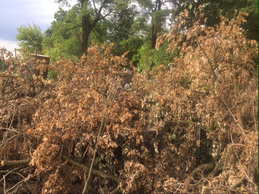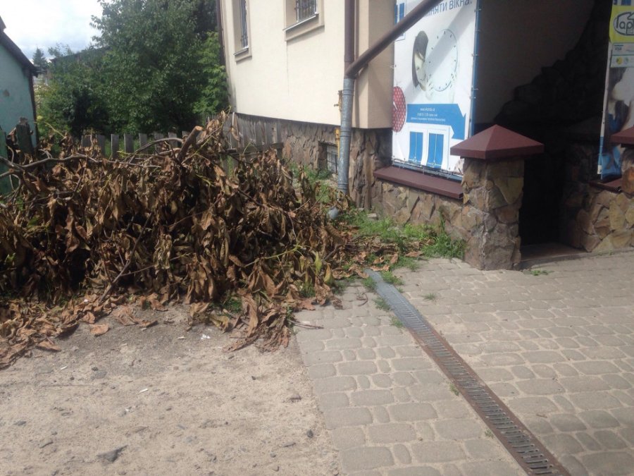 «Листя летить як не в обличчя, то в офіс. Гниє вже другий тиждень. Їздять тут через день, але ніхто голову поверне і скаже: ми листя забули, треба забрати», – обурюється дівчина.