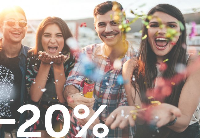 У свій особливий день кожен іменинник отримує знижку -20% на все меню дитячого кафе «Чорничне», що у Дитячому розважальному комплексі «Смугастий носоріг» (2-1 поверх) та таку ж знижку на все меню, гру в боулінг та більярд у «George's Club» (3-й поверх).
