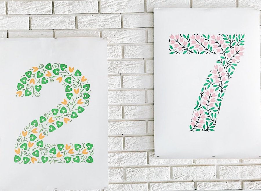 Роботи представлені в експозиції авторства графічного дизайнера, художника та ілюстратора Катерини Яцушек. Це великі цифри, складені з візерунків, а кожен візерунок у свою чергу - з великої кількості ліній. Ця досить клопітка робота графічного дизайнера викликала захоплення в людей дотичних до дизайну та графіки.