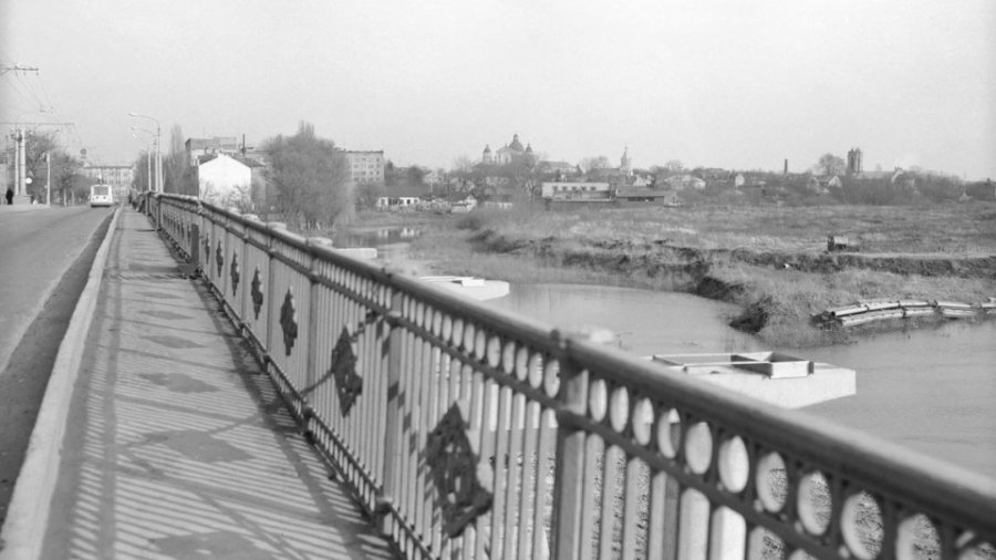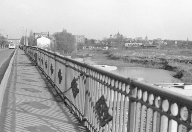 Знімок зроблений зі старого Красненського мосту. Панорама Луцька постає у всій красі, кірха без шпиля, міст вузенький, ще до реконструкції, справа видно нові опори, і найважніше - Стир іще тече старим руслом попід чудовою панорамою древнього Лучеська», - зазначає митець.