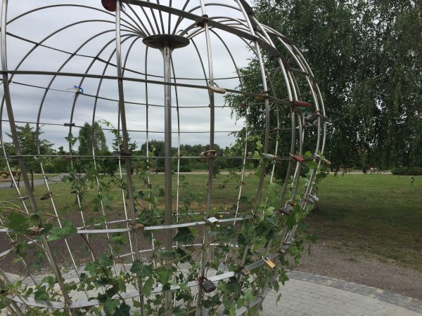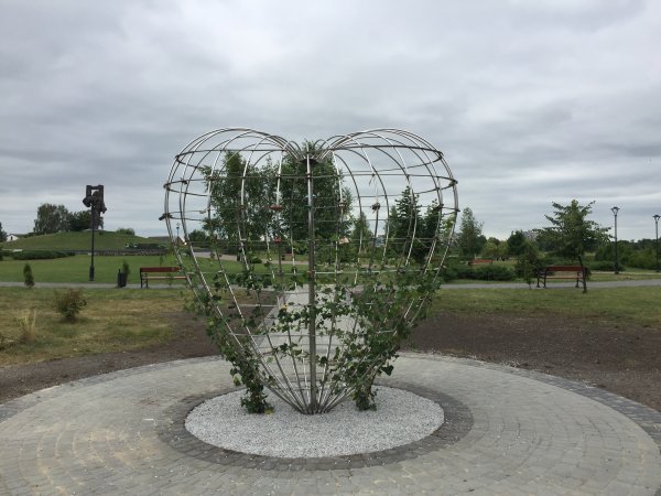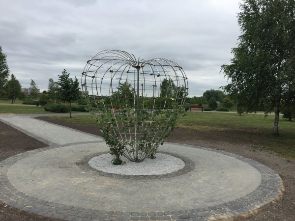 Днями він з'явився у парку культури імені Тараса Шевченка. До нового місця розташування «Серця миру» облаштували доріжку та заплели конструкцію плющем.
