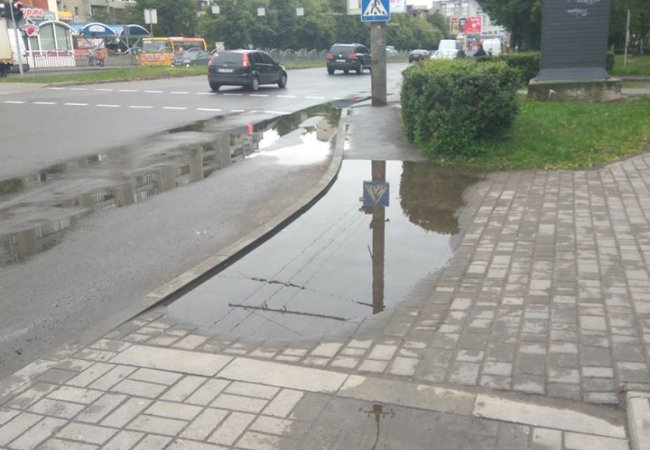 У Луцьку скаржаться на калюжі, які утворюються після дощу, перед переходом на проспекті Соборності.