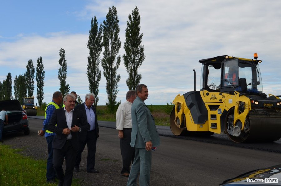 Голова Волинської обласної держадміністрації Олександр Савченко оглянув ремонт дороги Луцьк-Володимир-Волинський поблизу села Холопичі – тут вкладають верхній шар асфальту.