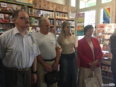 Очільниця обласної спільки письменників Ольга Ляснюк каже, що з інтернету дізналася про ситуацію та акцію. Для письменників книгарня дуже важлива, тому вона сьогодні прийшла із колегами.