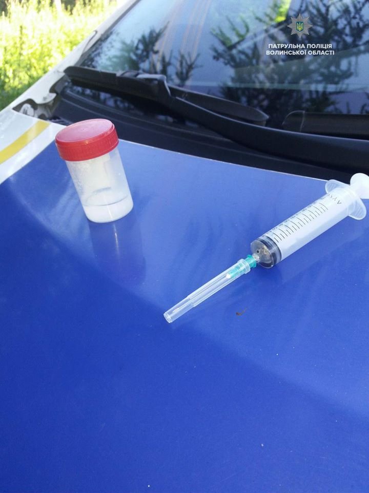 Перевіривши чоловіка й жінку, виявили при них пластикові ємності з прозорою рідиною, схожою на наркотичну, а також шприц, - інформує Патрульна поліція Волині.
