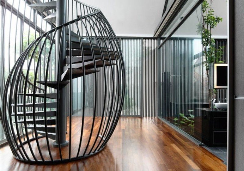6. Гвинтові сходи. Не просто стильно, а й завжди оригінально. Їх можна виконати з дерева, скла або металу. Головною перевагою є те, що вони займають мінімум простору.
