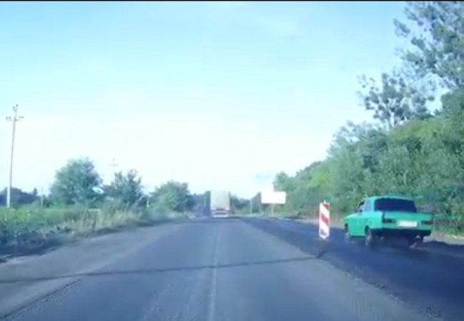 Під Луцьком водій автомобіля «Москвич» проігнорував ремонт та виїхав на щойнозроблену дорогу.