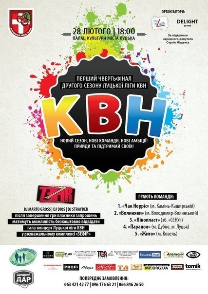 А після завершення гри власники запрошень матимуть можливість безплатно відвідати гала-концерт Луцької ліги КВН у розважальному комплексі «ZEFIR».