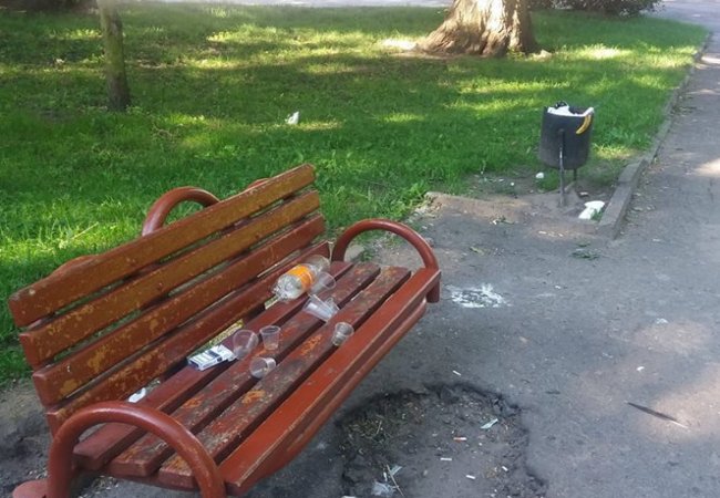 "Ось так в нашому місті виглядає парк зранку. Про лушпиння з насіння взагалі мовчу. Одним словом - бидло відпочивало", - йдеться у повідомленні жінки.