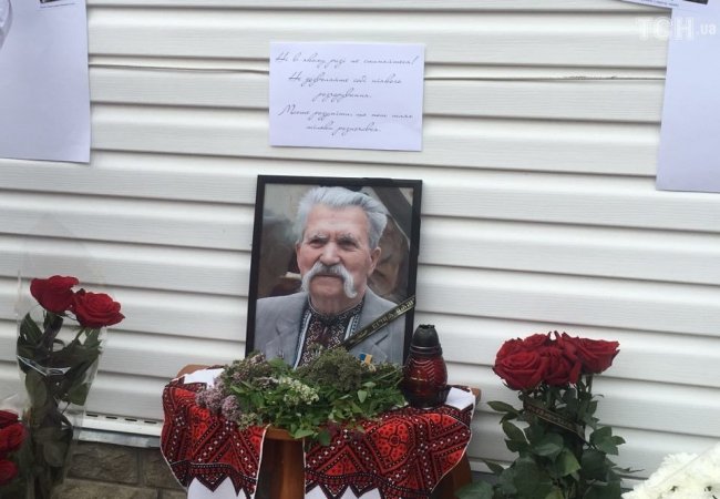На будинку наклеїли портрети та цитати діяча. Крім того на стіни повісили порожні аркуші ватмана, на яких можна висловити свої співчуття.