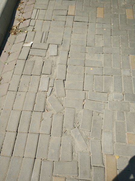 На знімках, які додав чоловік видно, що бруківка справді викладена доволі дивно.
