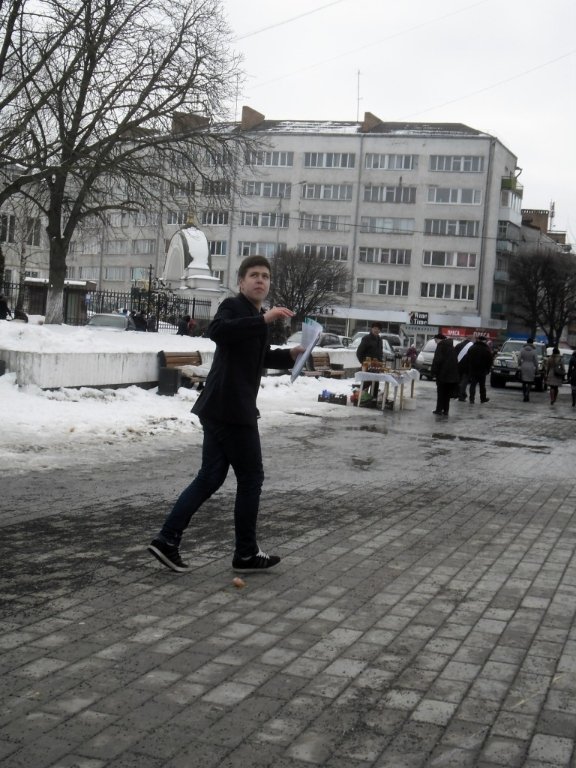 Під час дійства виступив актор «Янукович», який від учасників акції «вимагав гроші на покращення». Після того, як він виступив з промовою, його закидали яйцями.