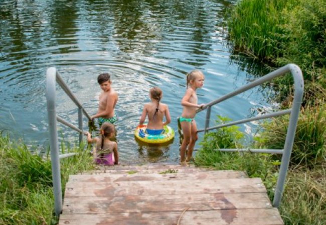 Так, на центральному пляжі у післяобідню пору не бракує відпочивальників. Особливо радіють водичці дітлахи: борсаються, плавають і бавляться.