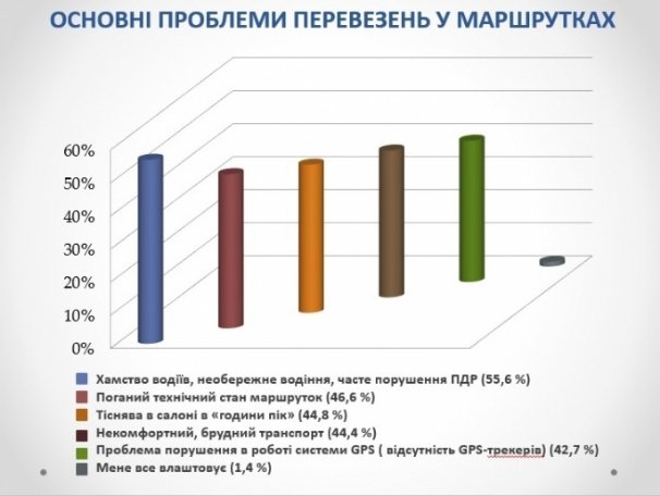 Щодо проблем інфраструктури, то головною проблемою є відсутність графіків руху на зупинках.