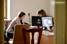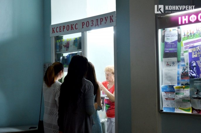 На другому ж поверсі все у розпалі. Під кожними дверима стоять кілька абітурієнтів, які по черзі заходять у невеликі кабінети, аби подати свої документи.