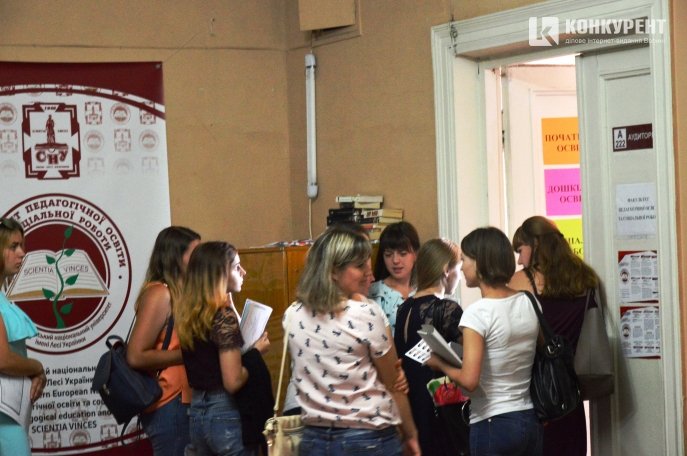 Найбільша черга – на факультет педагогічної освіти та соціальної роботи. На запитання, чому не подають документи в електронному вигляді, розгублені або надто зосереджені дівчата не дали відповіді.