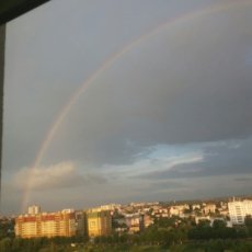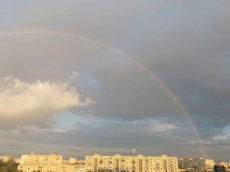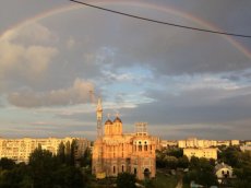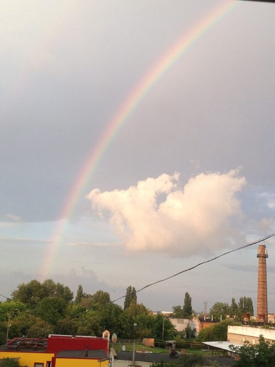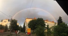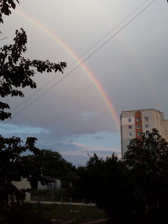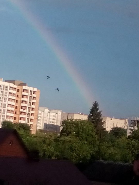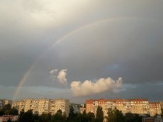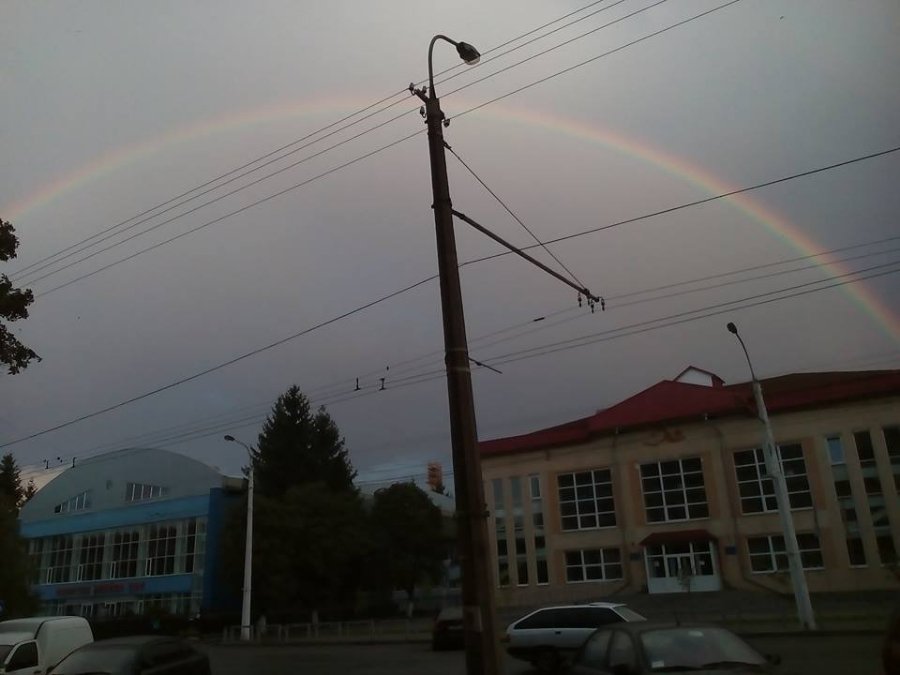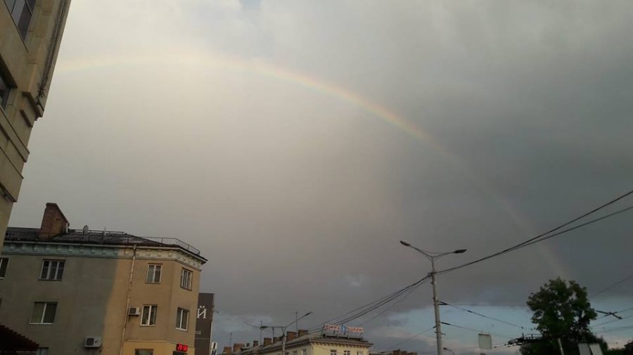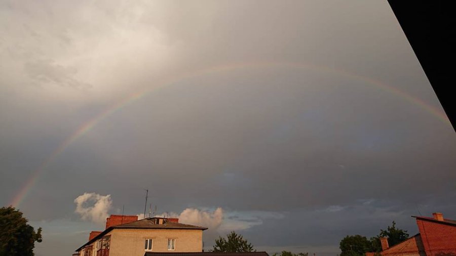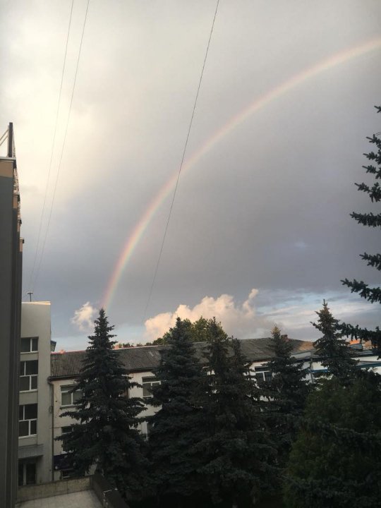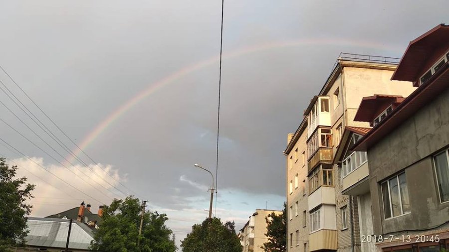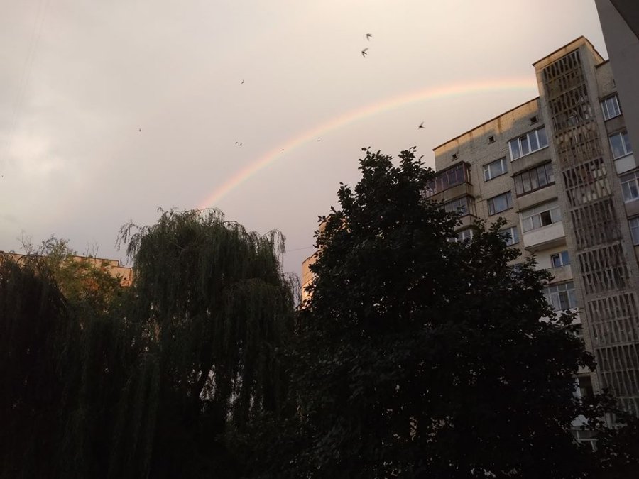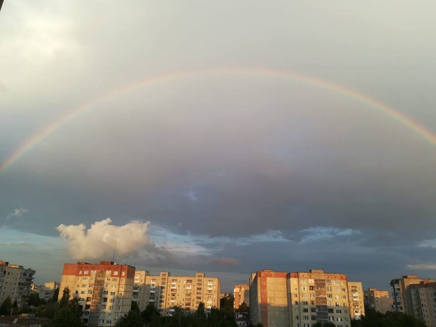 Користувачі соціальних мереж активно діляться фотографіями веселки у Луцьку після сьогоднішнього дощу.