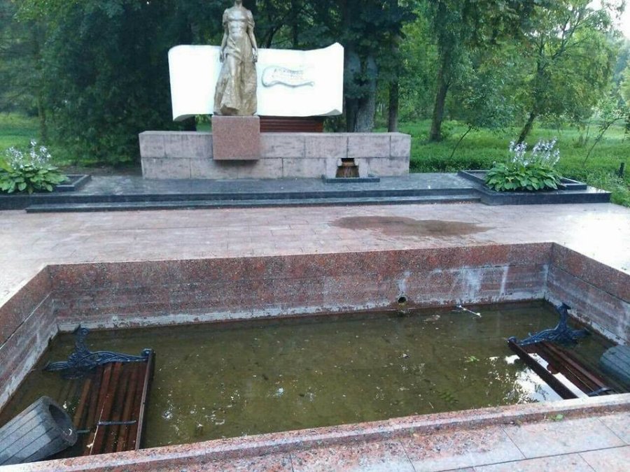 У центральному парку Луцька вандали покидали в фонтан лавки і смітники. ФОТО