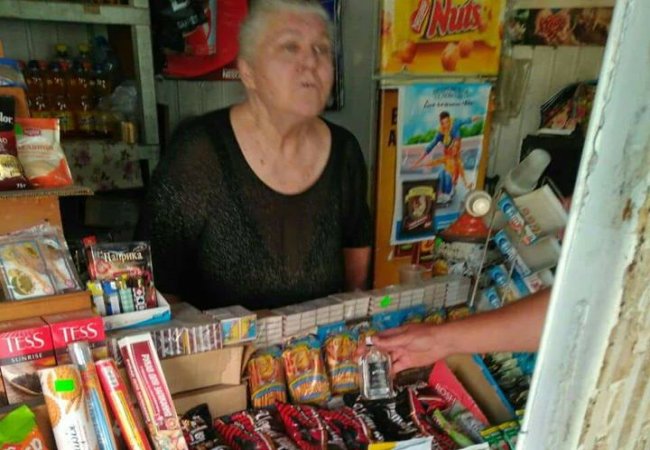 Жінка приторговує оковитою з-поміж продуктів харчування. Має "своїх" клієнтів, алкоголь розливає у заздалегідь заготовлену тару по 0,5 л та 0,25 л.