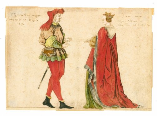 Але повернемось до Вітовта. Він у своєму гардеробі поєднував бургундську моду із простими речами. Що мається на увазі? Сорочка з вибіленого полотна, поверх якої він одягав верхній каптан або жупан, суконні штани, і завершував образ пояс, розшитий золотом.