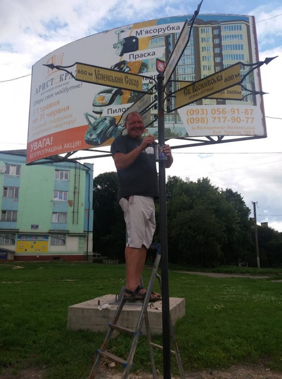 Чоловік власноруч виготовив та встановив вказівники до пам'яток архітектури древнього Володимира. Вказівники встановлені на перехресті вулиць Ковельської, Данила Галицького та Устилузької.