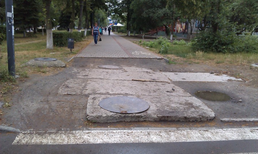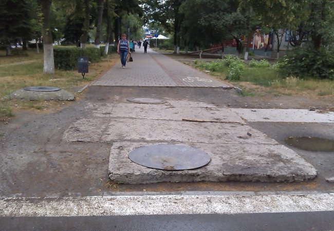 «... поверхня нерівна, розміщені люки, під які діти всовують гілки, кидають камінці. Все це робить вигляд проспекту неестетичним, проїзд осіб з обмеженими можливостями (на інвалідних візках), батьків з дітьми у візочках, та й прохід інших прохожих ускладненим (біля будинку №15) і, навіть, небезпечним (біля будинку №13)» - підкреслює Олена Петрошук.
