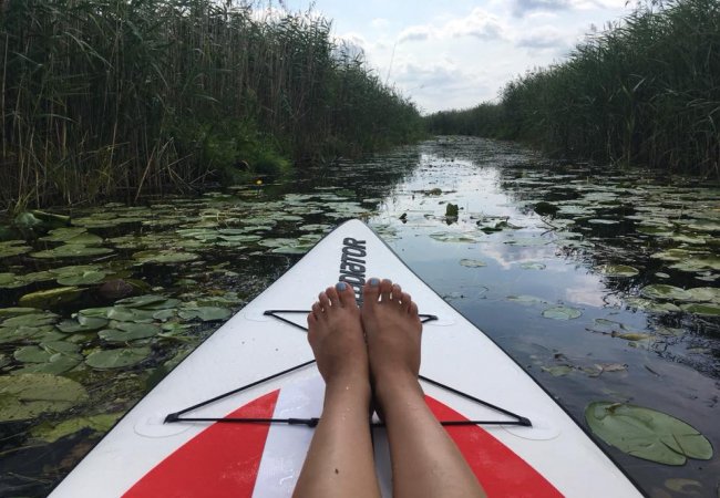 «Перед нами невелике озеро, де дика природа і дика місцина. Люди всі в околиці знають про нього, але мало хто сюди запливає, бо не мають підходящого спорядження. Але ми маємо чудові САПи. Це нереально круто! Папороть наче з юрського періоду. Таке враження, ніби канал створений штучно, але він настільки заріс, що нам на САПі важко плисти. Ніби ми серед Бразилії в Амазонських джунглях», - розповідає Богдан.