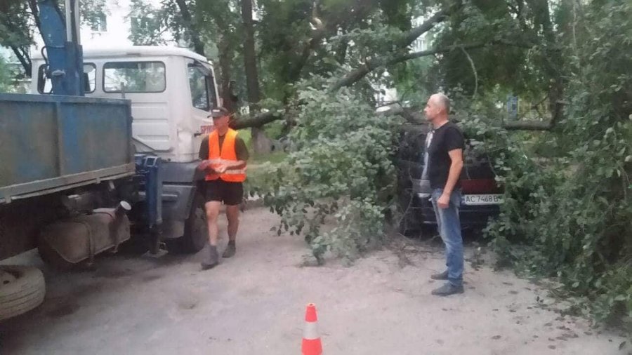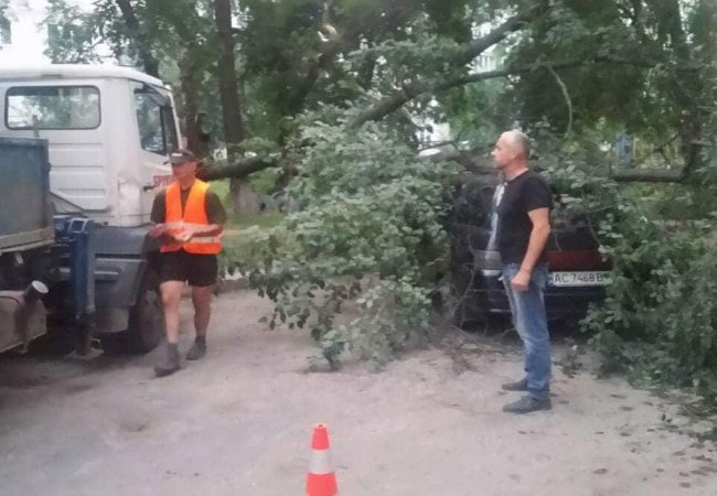 "Сьогодні 19 липня, після пориву вітру, впало дерево на автомобіль, по вулиці Конякіна 14 А. Справились своїми силами, допомогла фірма "Вишків-брук", - йдеться у дописі.