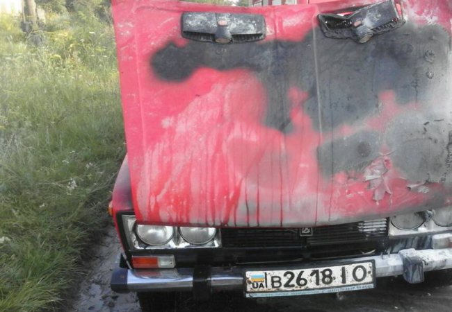 Вогнем було знищено проводку у моторному відсіку, акумуляторну батарею, пошкоджено покриття капоту, передні фари.