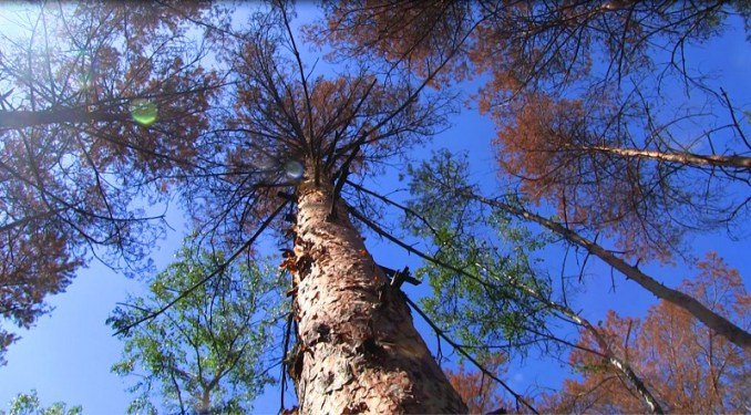 «Це так би мовити свіжопошкоджена ділянка. Ще тиждень тому такого не було. Ми вже подали необхідні дані в екологію. Сухостої потрібно забирати. Інакше площа всихання стрімко збільшуватиметься. А цього не можна допустити», – показує вражені дерева лісничий Гірницького лісництва Іван Михалевич.