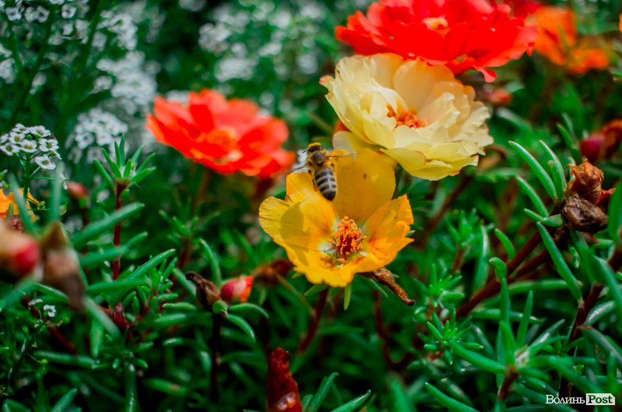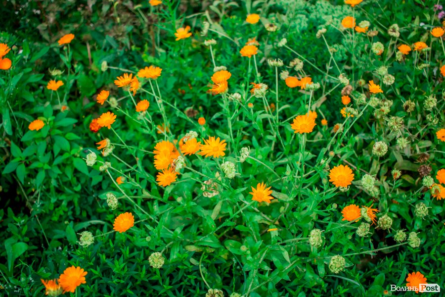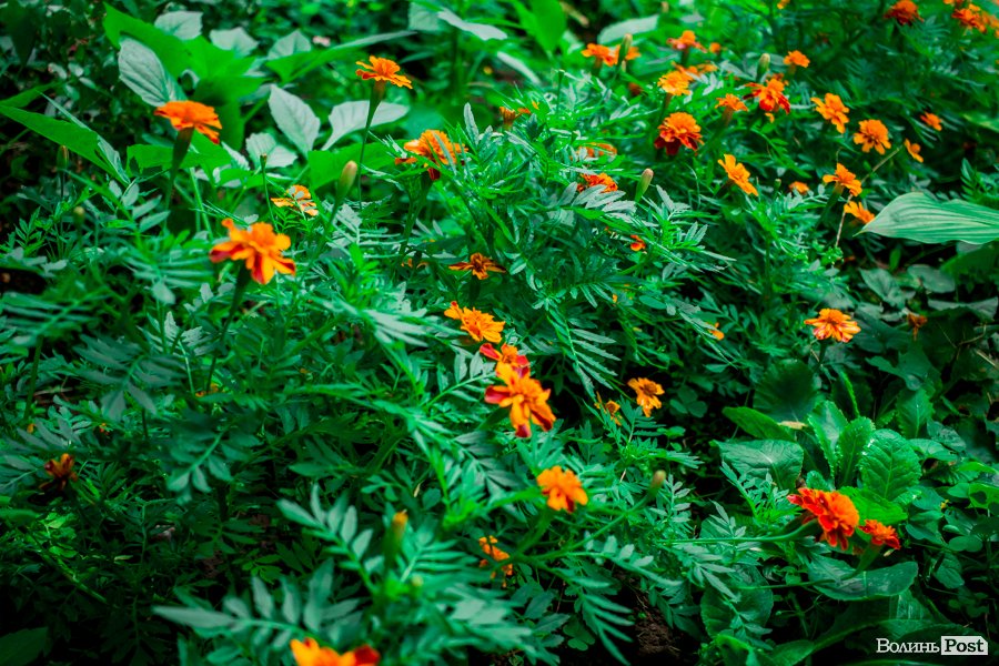 Тож луцькі дворики, балкони та підвіконня заполонили різнокольорові троянди, чорнобривці, петунії, мальви, гортензії, а у зеленій траві досі видніються яскраві кульбаби та інші "дикі" квіти.