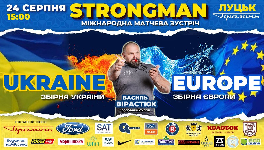 Зустріч стронгменів «Збірної України» проти «Збірної Європи». У складі команд зберуться по чотири потужних атлети, які вже давно стали відомими у всьому світі.