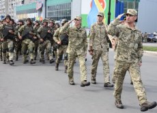 Військовослужбовці 14 окремої механізованої бригади із Володимира-Волинського взяли участь у параді з нагоди звільнення Лисичанська на Луганщині.