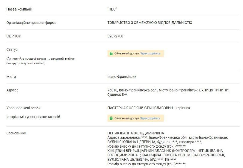 ТОВ "ПБС" зареєстроване в Івано-Франківську. Основним власником фірми є Іванна Непик. У профілі жінки у мережі Facebook вказано, що вона керує магазином гірськолижного спорядження у "Буковелі".