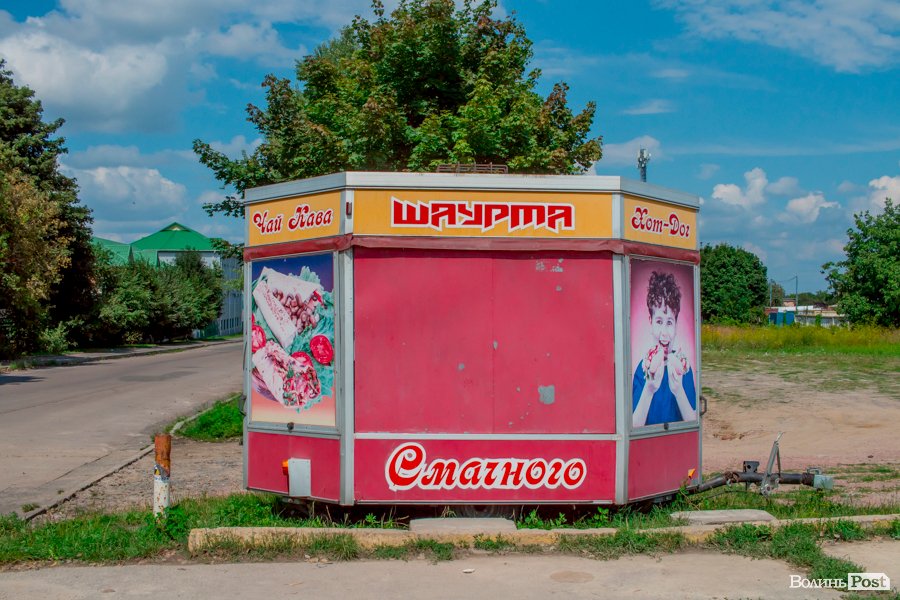 Проте навіть у цьому, майже безлюдному, куточку можна поласувати шаурмою, принаймні, таку можливість анонсує МАФ, встановлений поблизу «Волиньобленерго».