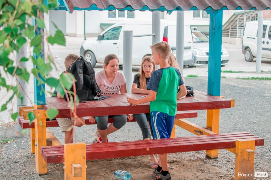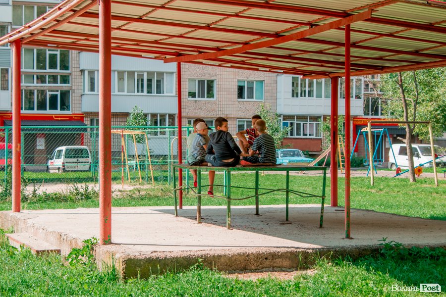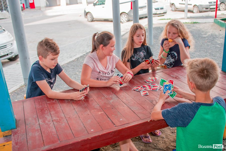 У дворі дому панує дитяче царство - малеча грає у футбол, карткову гру «Уно» чи банально ліпить із грязюки, яка утворилася після дощу.