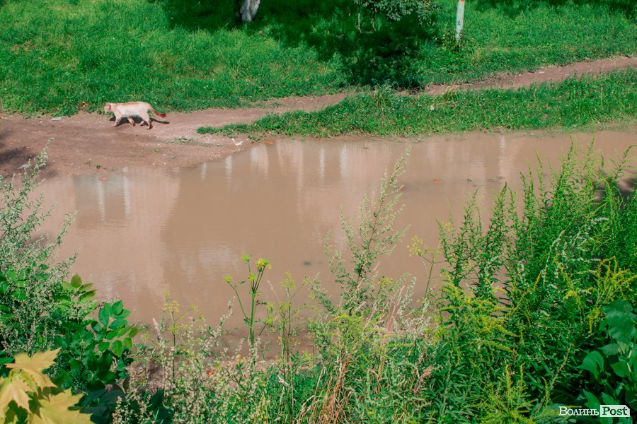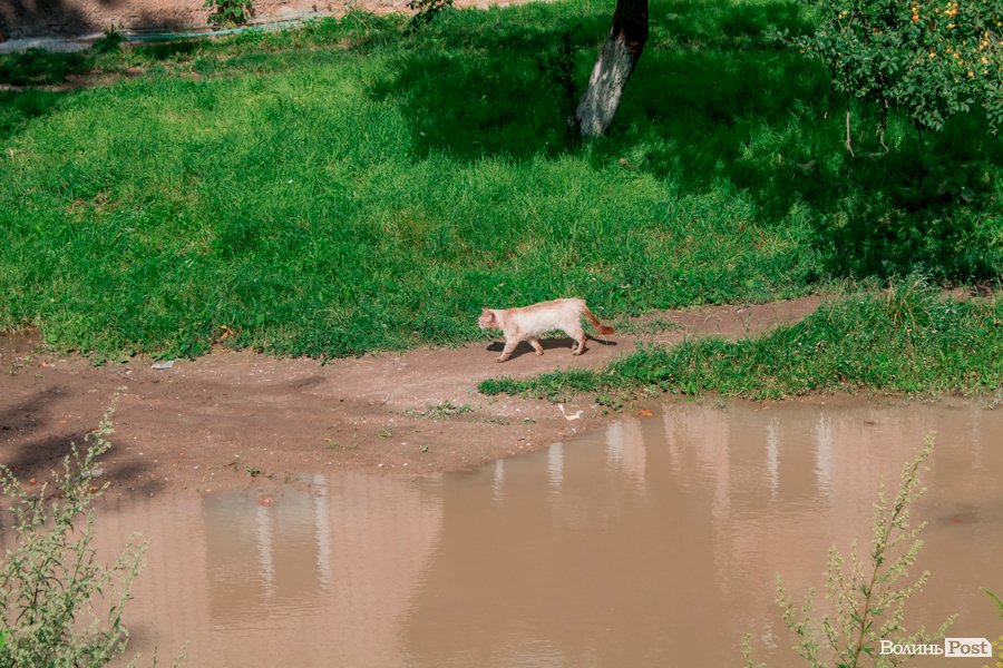 З моста відкривається цікава картина – пори те, що дощ ту був ще вночі, біля будинків лишилося чимало калабань. Найбільше невдоволення мутна вода викликає у котів, які приголомшено зупиняються та міркують, як би то перебратися на другий бік. Хоча й двоногі перехожі мало радіють такому стану речей, подекуди навіть лаючи все на світі, а найперше - дощ і Венецію, у яку перетворюється двір після зливи.